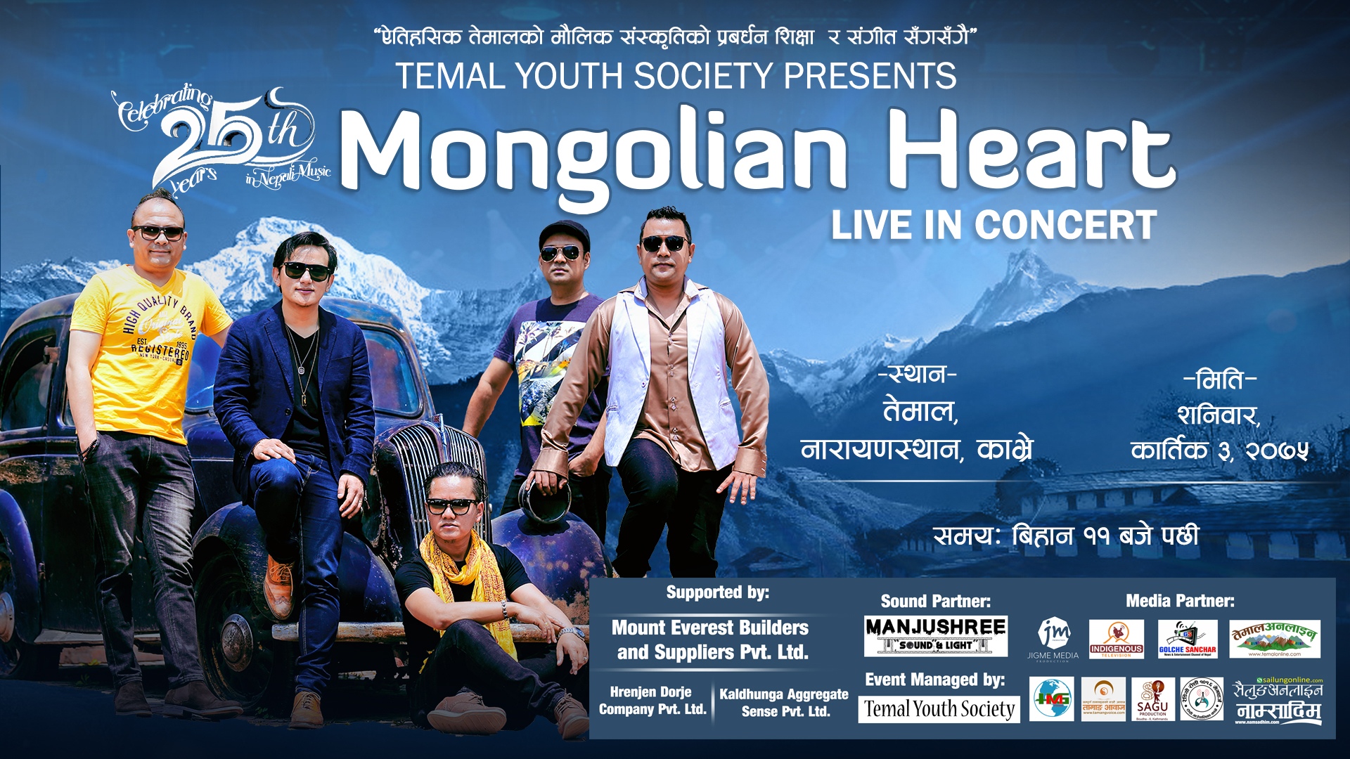 कार्यक्रमको लागि “मङ्गोलियन हर्ट” ब्याण्ड आफ्नो सांगीतिक प्रस्तुतिका लागि आफ्नो सम्पुर्ण ब्याण्ड मेम्बर सहित कार्तिक २ गते नै तेमाल प्रस्थान गर्ने भएको छ । यसै कार्यक्रममा तेमालकै चर्चित गायक / संगितकार विश्व दोङ लगायतका कलाकारहरुको पनि प्रस्तुति रहने आयोजकले गोल्चे सन्चारलाई जानकारी गराएका छन् ।